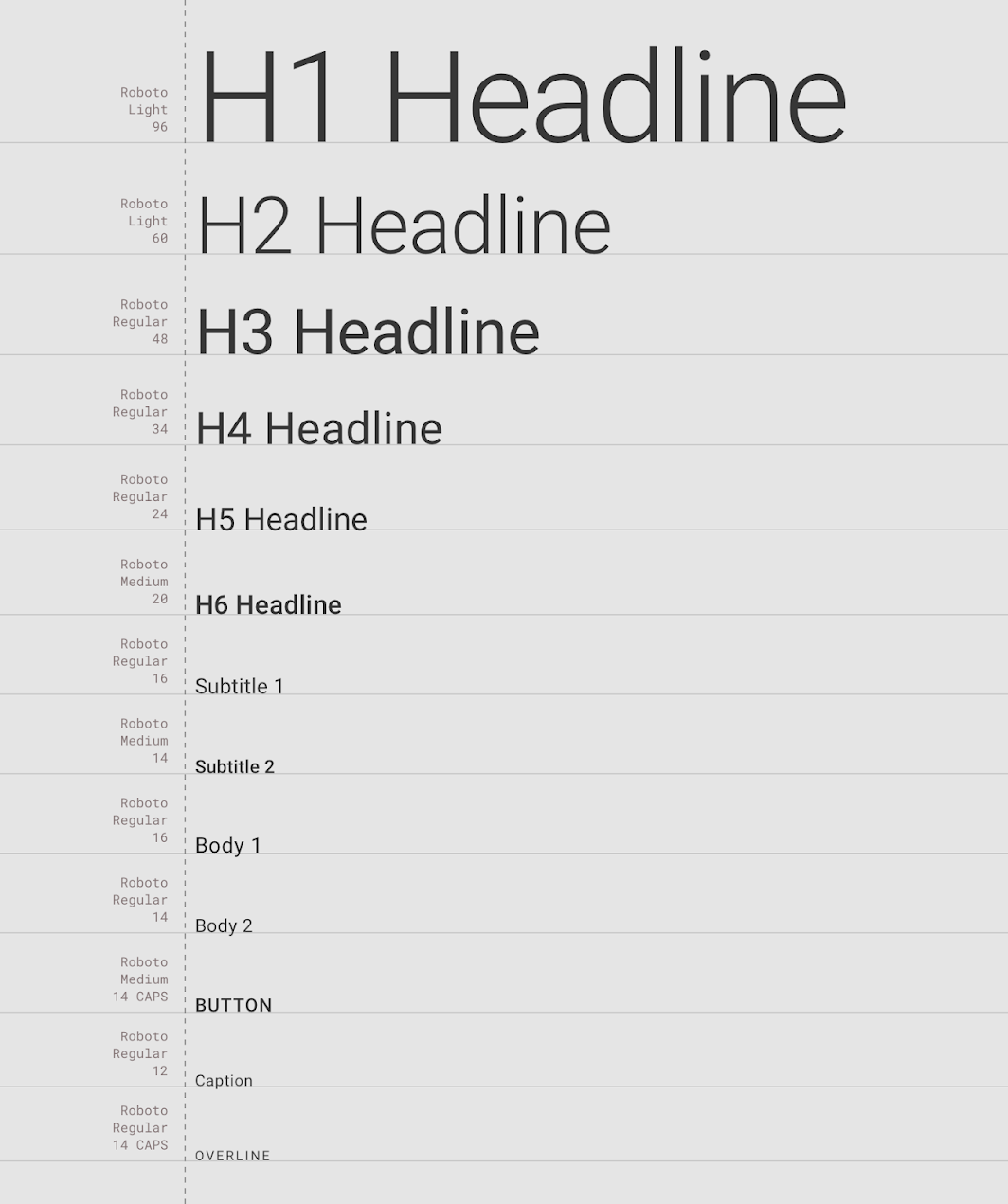 구글이 간편한 디자인을 위해 제공하는 Material Theme 을 사용하고있다면 미리 선언 된 타이포그래피를 사용할 수 있다.
